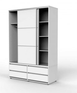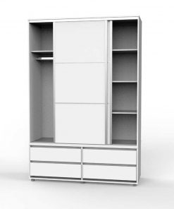 ארון הזזה 2 דלתות מדפים, עם מגירות ותליה
