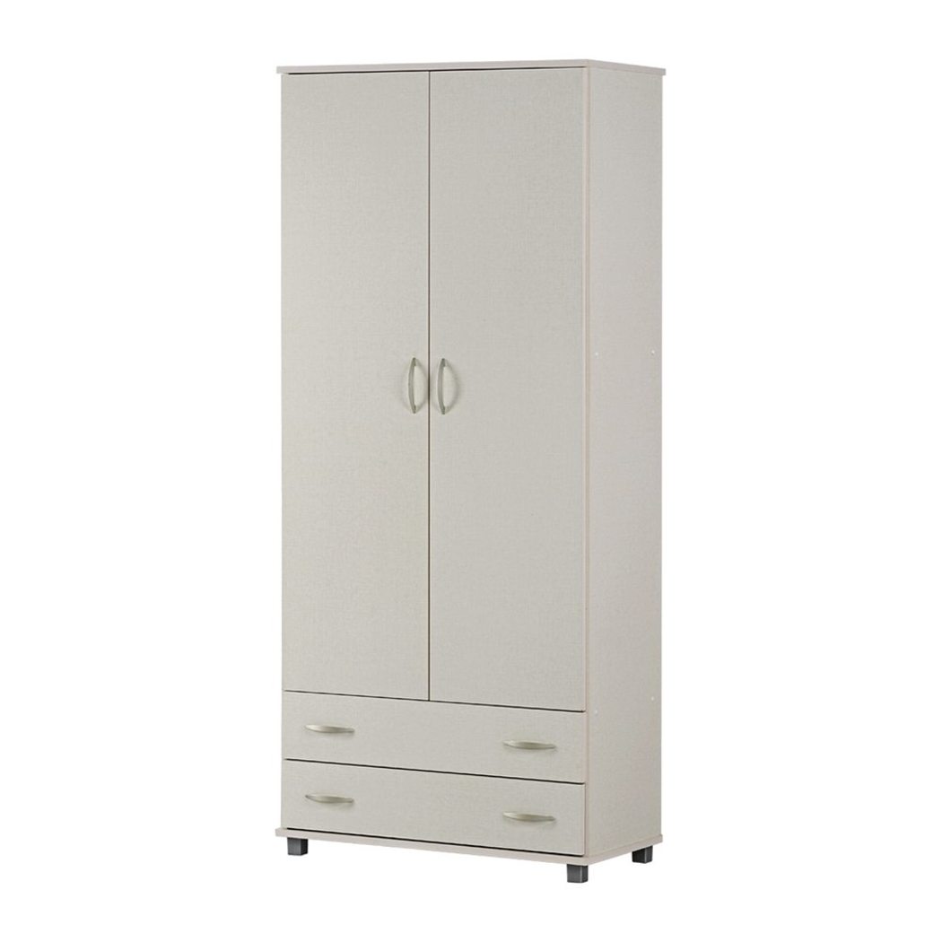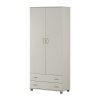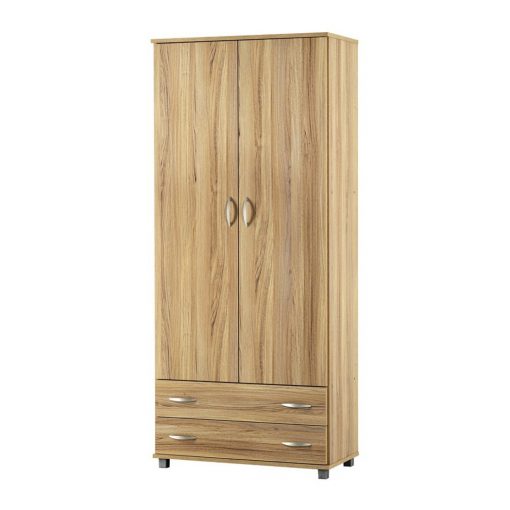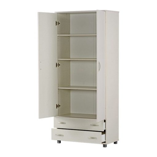 ארון איכותי שתי דלתות+שתי מגירות חיצוניות עומד על במה למניעת רטיבות מיועד לאחסון בגדים או כארון שירות קל להרכבה עומק 39.5 ס”מ מתאים גם למחסנים.