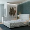 ראש המיטה בעיצוב מודרני הנותן למיטה מראה מלכותי ויוקרתי.