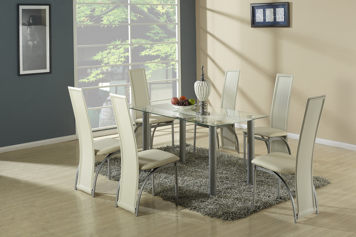 פינת אוכל מזכוכית דגם VERONA WHITE כולל 6 כיסאות