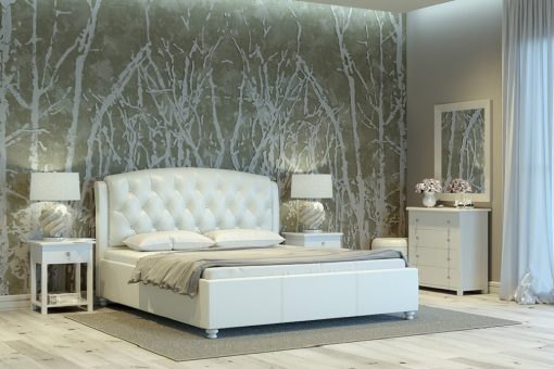 למיטה רגליים מעוגלות ומעוצבות ודוגמת קפיטונאז’ שמעניקות לה מראה מלכותי.